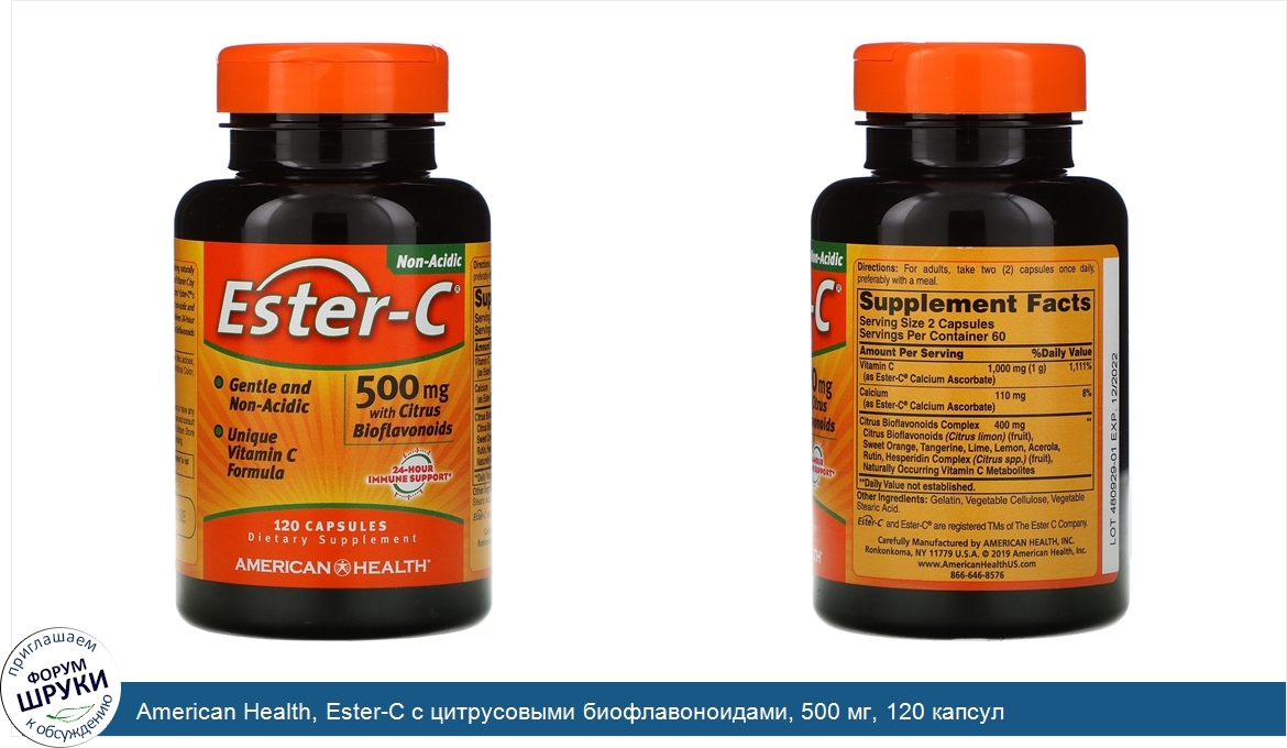 American Health, Ester-C с цитрусовыми биофлавоноидами, 500 мг, 120 капсул