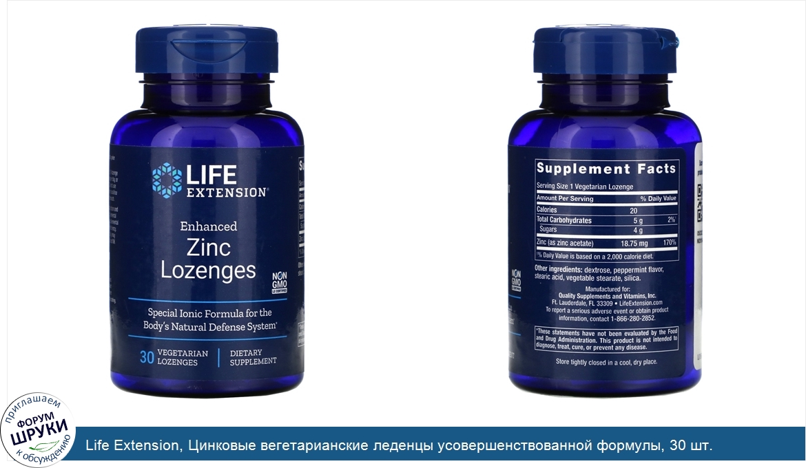 Life Extension, Цинковые вегетарианские леденцы усовершенствованной формулы, 30 шт.