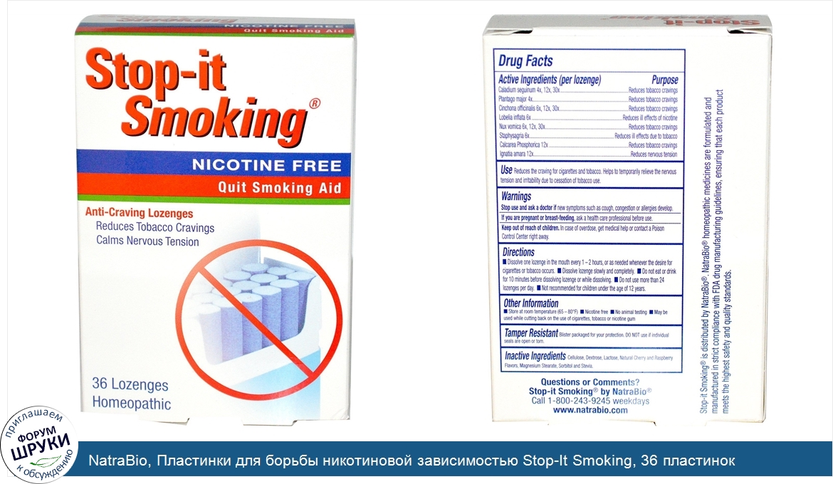 NatraBio, Пластинки для борьбы никотиновой зависимостью Stop-It Smoking, 36 пластинок