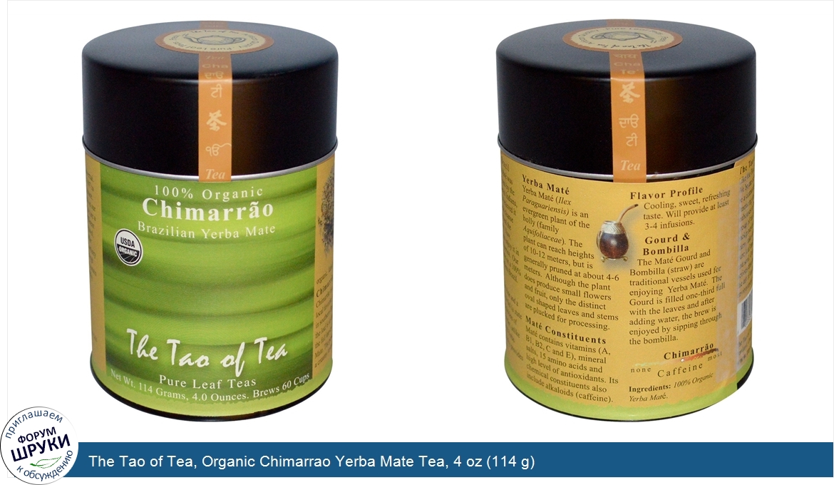 Друзья, если у вас есть отзыв/дополнение/комментарий/вопрос относительно The Tao of Tea, Organic Chimarrao Yerba Mate Tea, 4 oz (114 g) - напишите его ответом в эту тему (это будет полезно всему сообществу в целом и вам в отдельности).