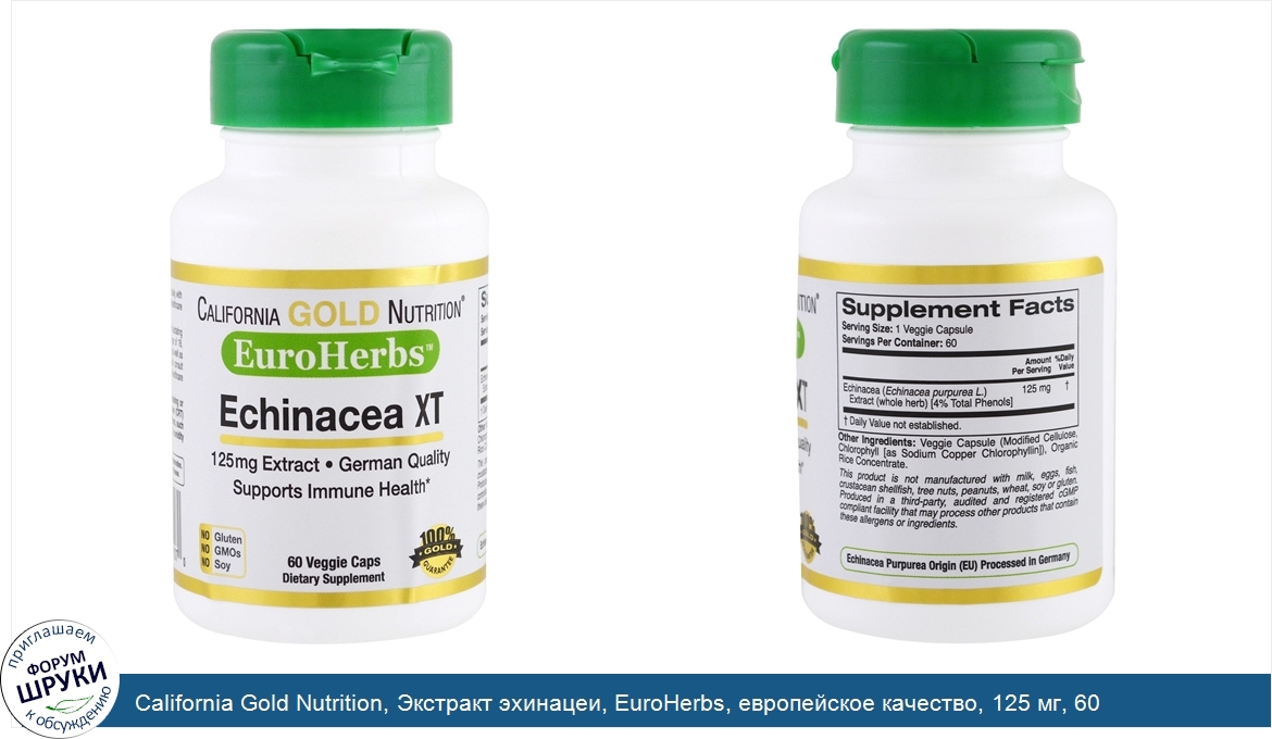 Друзья, если у вас есть отзыв/дополнение/комментарий/вопрос относительно California Gold Nutrition, Экстракт эхинацеи, EuroHerbs, европейское качество, 125 мг, 60 растительных капсул - напишите его ответом в эту тему (это будет полезно всему сообществу в целом и вам в отдельности).