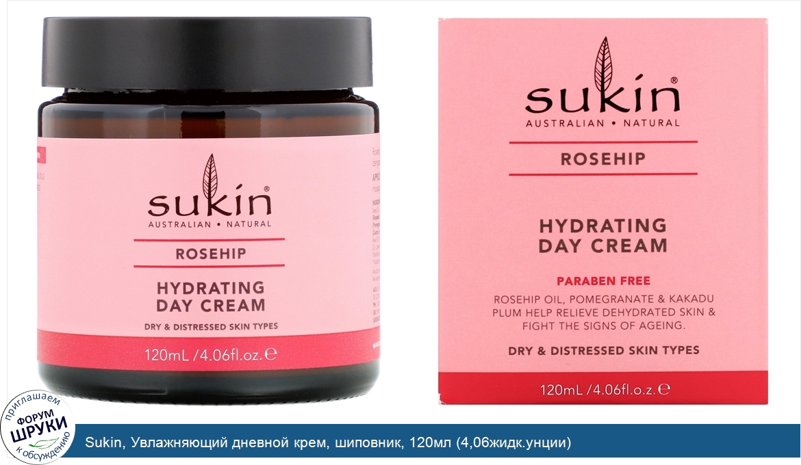 Sukin, Увлажняющий дневной крем, шиповник, 120мл (4,06жидк.унции)