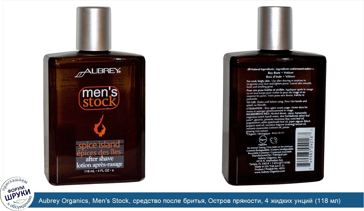 Друзья, если у вас есть отзыв/дополнение/комментарий/вопрос относительно Aubrey Organics, Men's Stock, средство после бритья, Остров пряности, 4 жидких унций (118 мл) - напишите его ответом в эту тему (это будет полезно всему сообществу в целом и вам в отдельности).