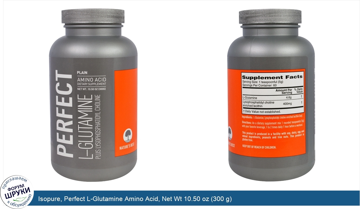 Друзья, если у вас есть отзыв/дополнение/комментарий/вопрос относительно Isopure, Perfect L-Glutamine Amino Acid, Net Wt 10.50 oz (300 g) - напишите его ответом в эту тему (это будет полезно всему сообществу в целом и вам в отдельности).