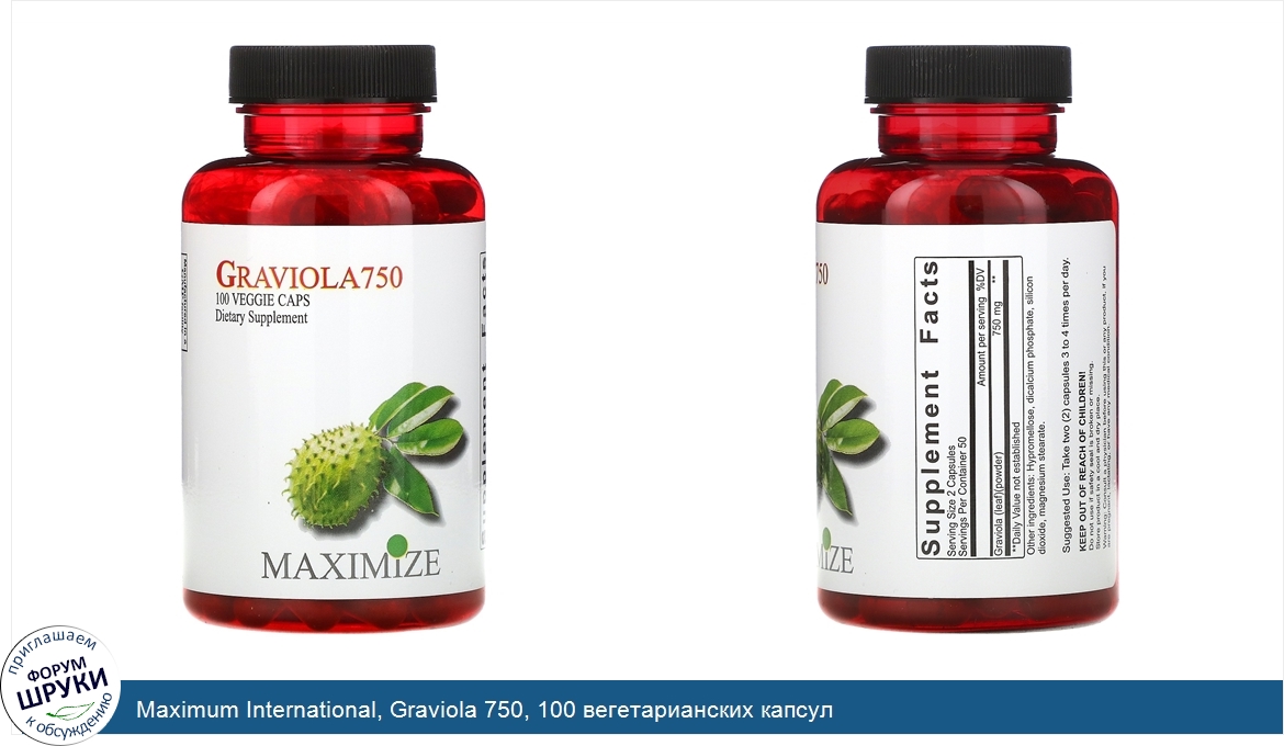 Maximum International, Graviola 750, 100 вегетарианских капсул