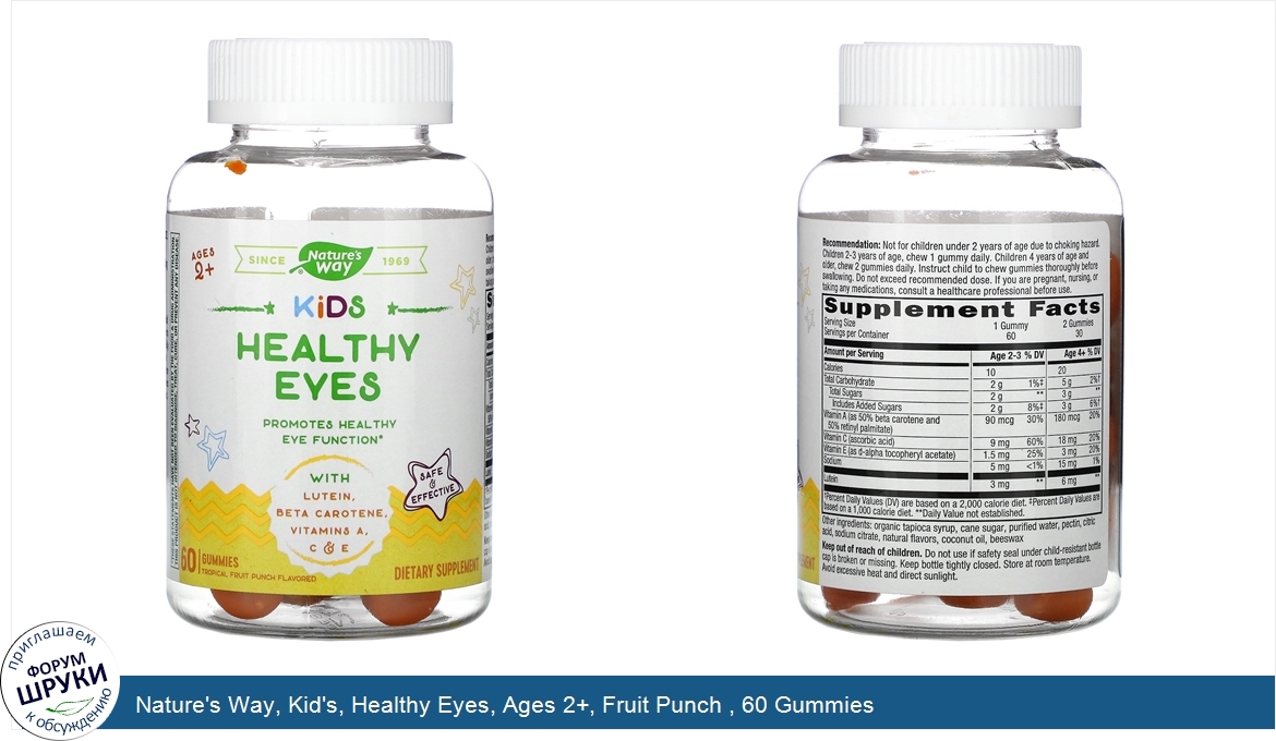 Друзья, если у вас есть отзыв/дополнение/комментарий/вопрос относительно Nature's Way, Kid's, Healthy Eyes, Ages 2+, Fruit Punch , 60 Gummies - напишите его ответом в эту тему (это будет полезно всему сообществу в целом и вам в отдельности).