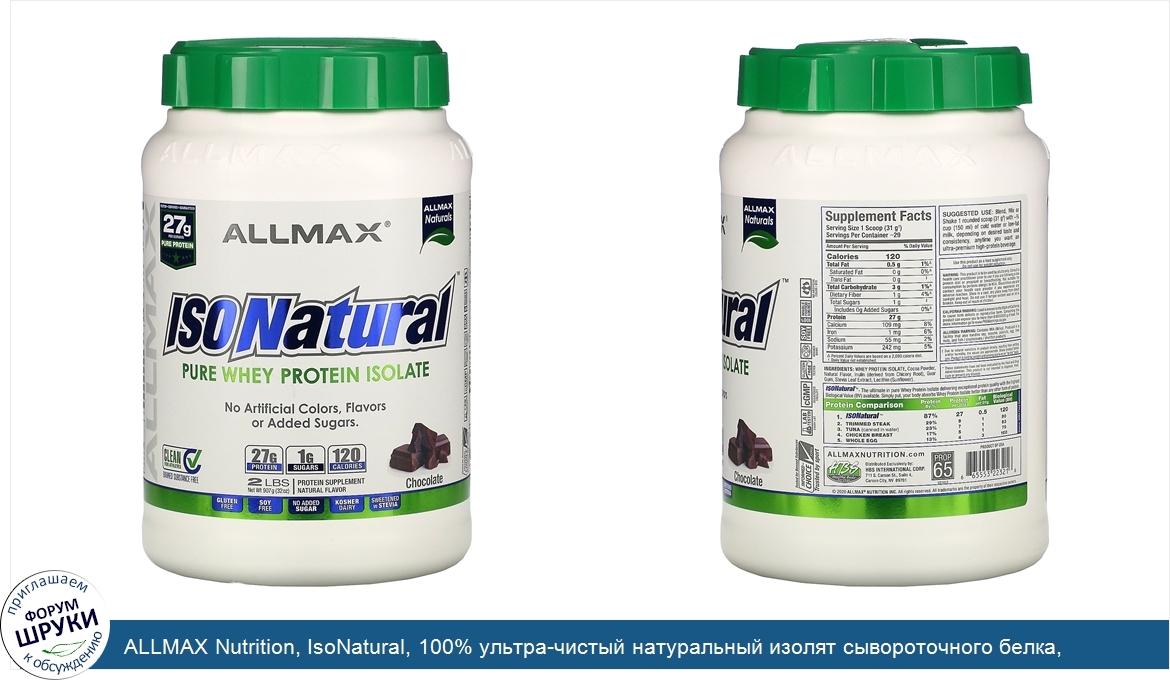 Друзья, если у вас есть отзыв/дополнение/комментарий/вопрос относительно ALLMAX Nutrition, IsoNatural, 100% ультра-чистый натуральный изолят сывороточного белка, шоколадный, 2 фунтов (907 г) - напишите его ответом в эту тему (это будет полезно всему сообществу в целом и вам в отдельности).