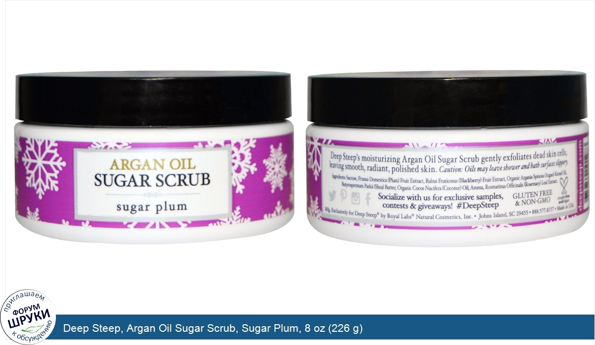 Друзья, если у вас есть отзыв/дополнение/комментарий/вопрос относительно Deep Steep, Argan Oil Sugar Scrub, Sugar Plum, 8 oz (226 g) - напишите его ответом в эту тему (это будет полезно всему сообществу в целом и вам в отдельности).
