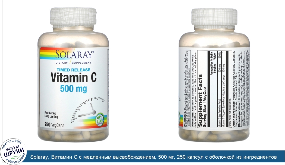 Друзья, если у вас есть отзыв/дополнение/комментарий/вопрос относительно Solaray, Витамин C с медленным высвобождением, 500 мг, 250 капсул с оболочкой из ингредиентов растительного происхождения - напишите его ответом в эту тему (это будет полезно всему сообществу в целом и вам в отдельности).