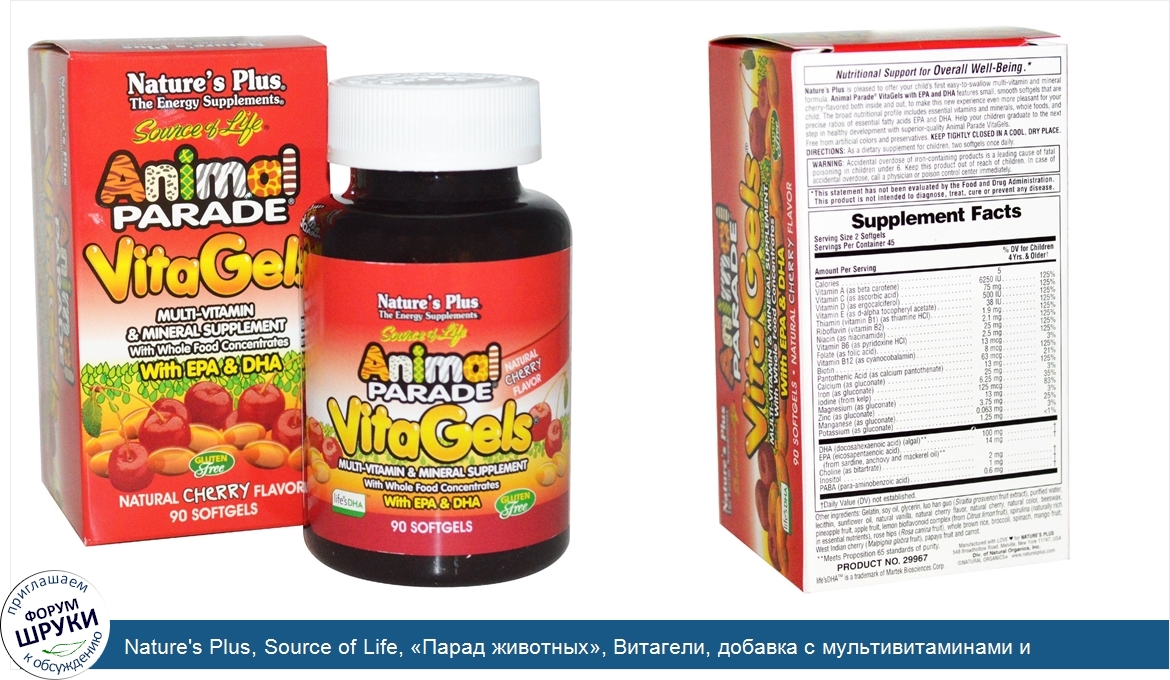 Друзья, если у вас есть отзыв/дополнение/комментарий/вопрос относительно Nature's Plus, Source of Life, «Парад животных», Витагели, добавка с мультивитаминами и минералами, натуральный вишневый вкус, 90 мягких желатиновых капсул - напишите его ответом в эту тему (это будет полезно всему сообществу в целом и вам в отдельности).