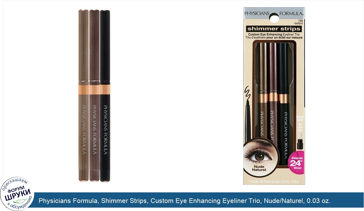 ru Physicians Formula, Shimmer Strips, Custom Eye Enhancing Eyeliner Trio, Nude/Naturel, 0.03 oz. (0.85 g)