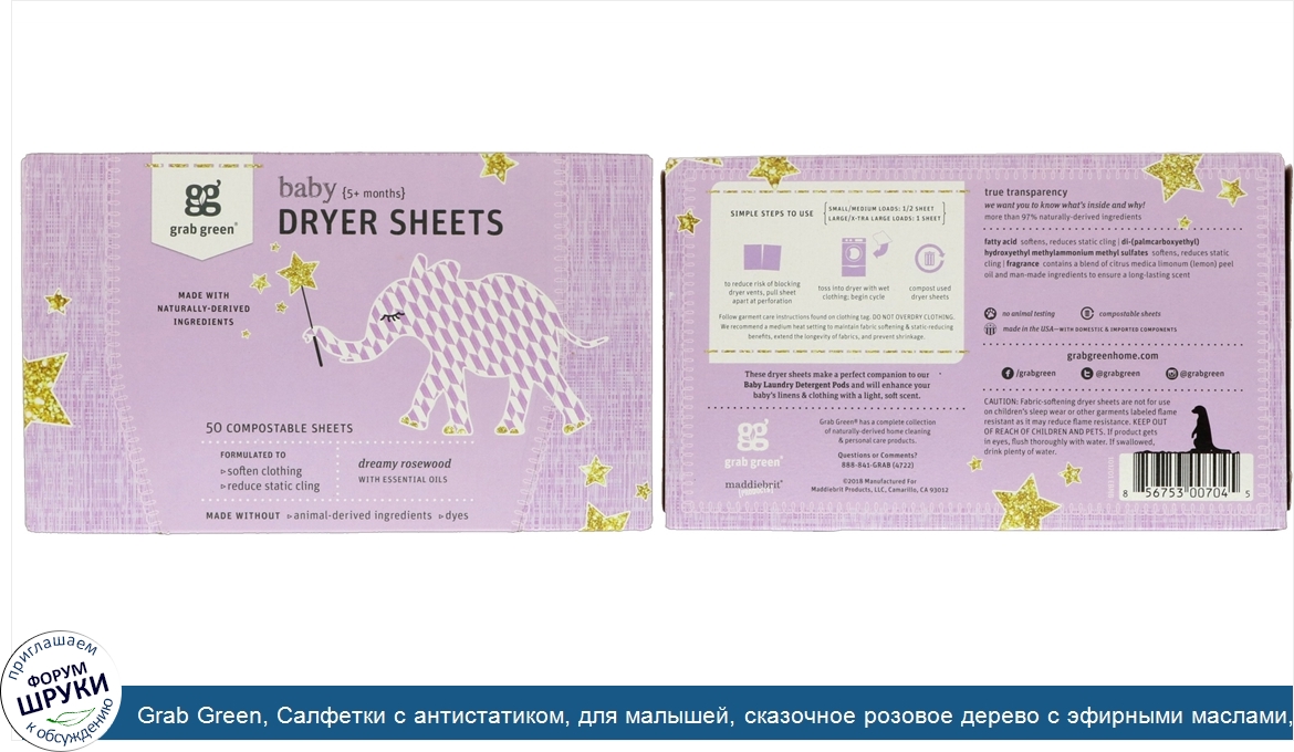 [DESCRIPT]Made with Naturally-Derived Ingredients. No Animal Testing. Formulated to:. Soften Clothing. Reduces Static Cling. These dryer sheets make a perfect companion to our Baby Laundry Detergent Pods and will enhance your baby's linens clothing with a light, soft scent.[/DESCRIPT]... (описание дополняется)