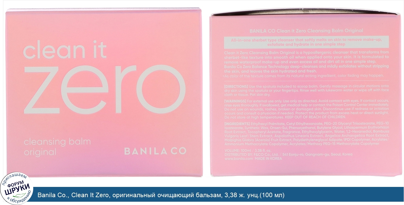 Друзья, если у вас есть отзыв/дополнение/комментарий/вопрос относительно Banila Co., Clean It Zero, оригинальный очищающий бальзам, 3,38 ж. унц.(100 мл) - напишите его ответом в эту тему (это будет полезно всему сообществу в целом и вам в отдельности).