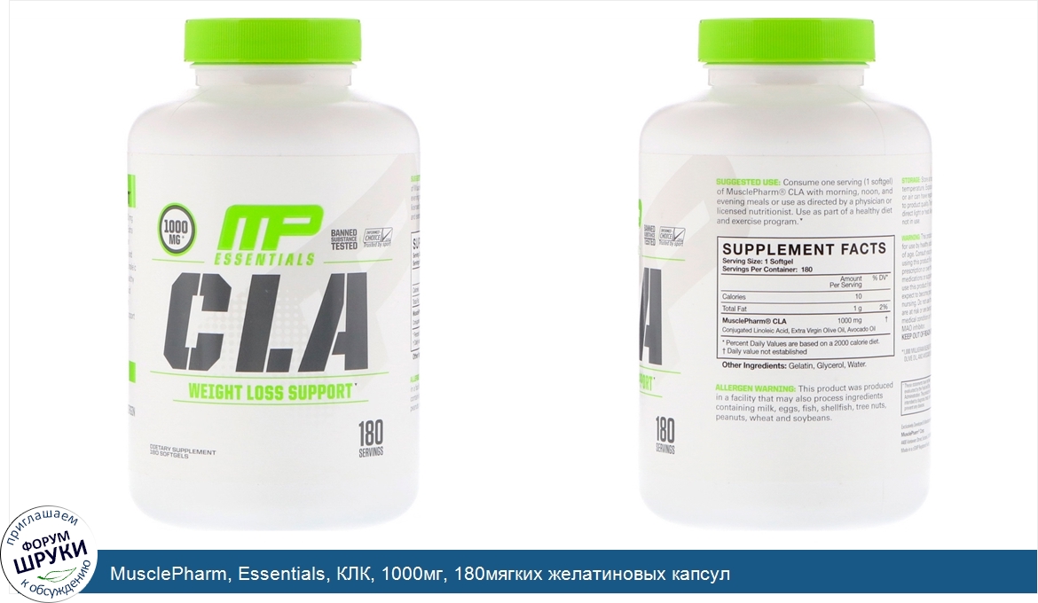 Друзья, если у вас есть отзыв/дополнение/комментарий/вопрос относительно MusclePharm, Essentials, КЛК, 1000мг, 180мягких желатиновых капсул - напишите его ответом в эту тему (это будет полезно всему сообществу в целом и вам в отдельности).
