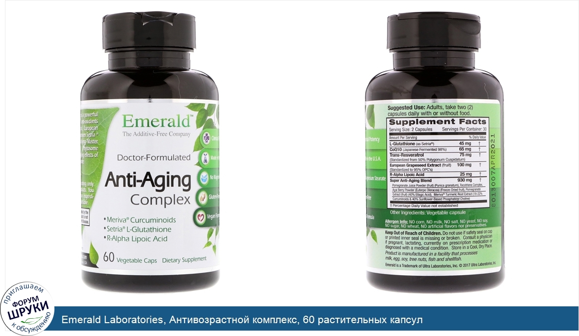 Друзья, если у вас есть отзыв/дополнение/комментарий/вопрос относительно Emerald Laboratories, Антивозрастной комплекс, 60 растительных капсул - напишите его ответом в эту тему (это будет полезно всему сообществу в целом и вам в отдельности).