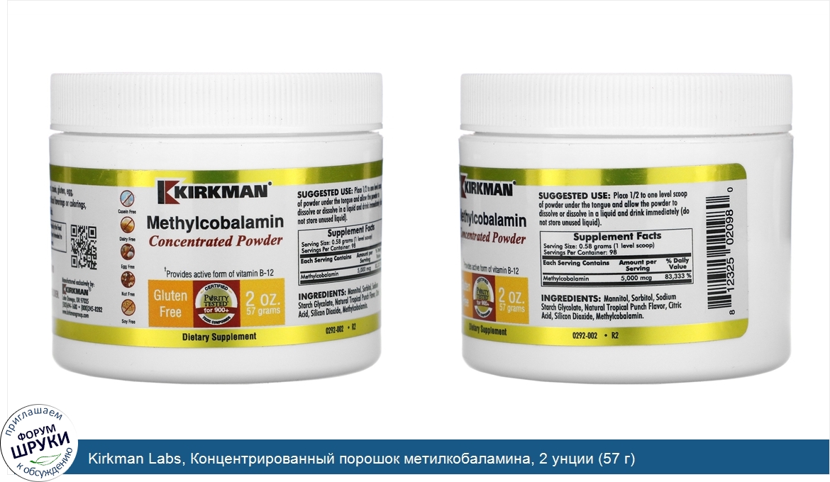 Kirkman Labs, Концентрированный порошок метилкобаламина, 2 унции (57 г)