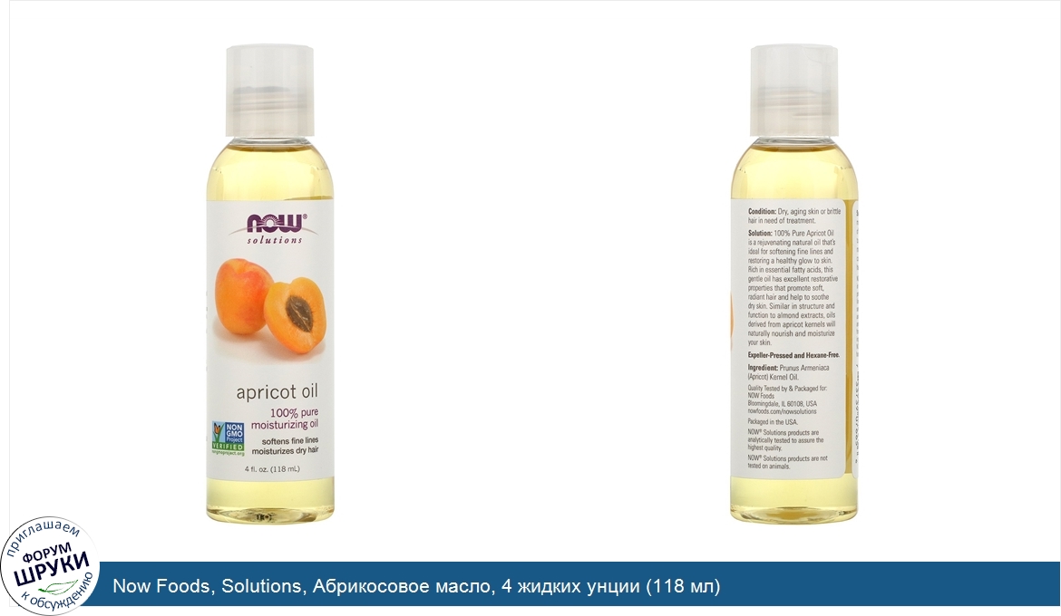 Now Foods, Solutions, Абрикосовое масло, 4 жидких унции (118 мл)
