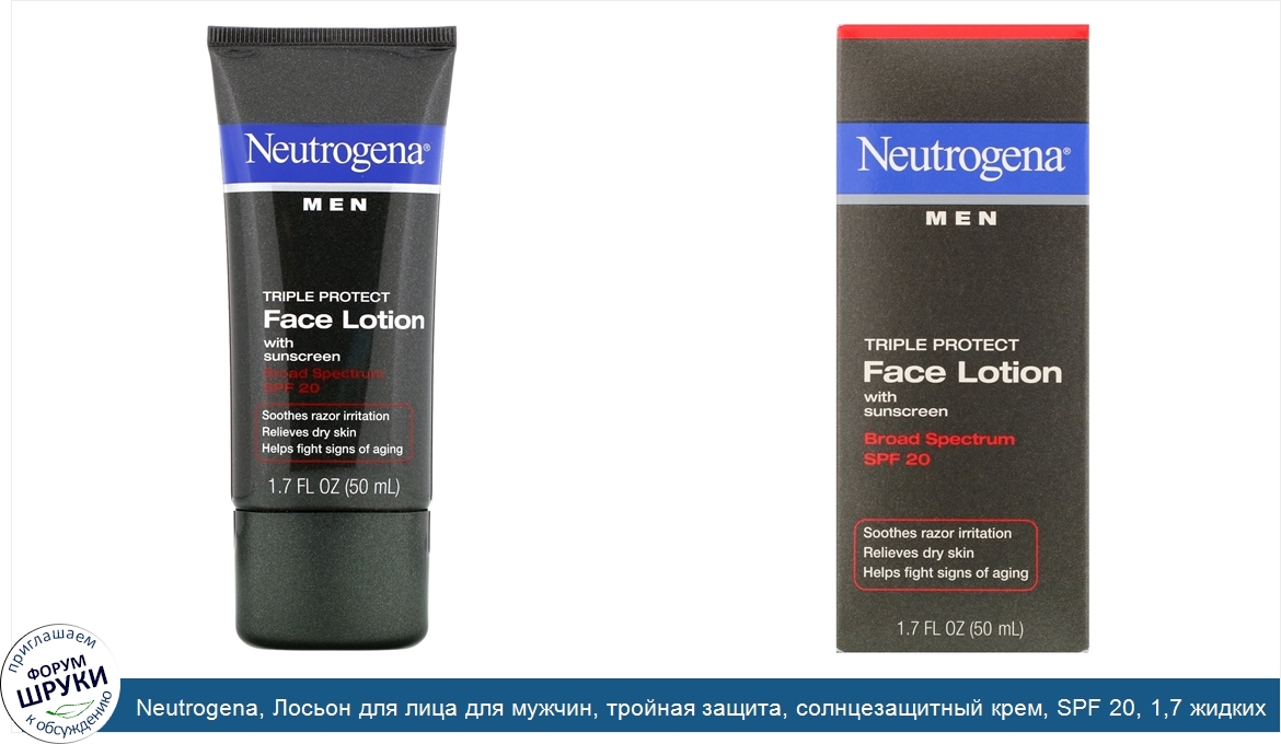 Друзья, если у вас есть отзыв/дополнение/комментарий/вопрос относительно Neutrogena, Лосьон для лица для мужчин, тройная защита, солнцезащитный крем, SPF 20, 1,7 жидких унций (50 мл) - напишите его ответом в эту тему (это будет полезно всему сообществу в целом и вам в отдельности).