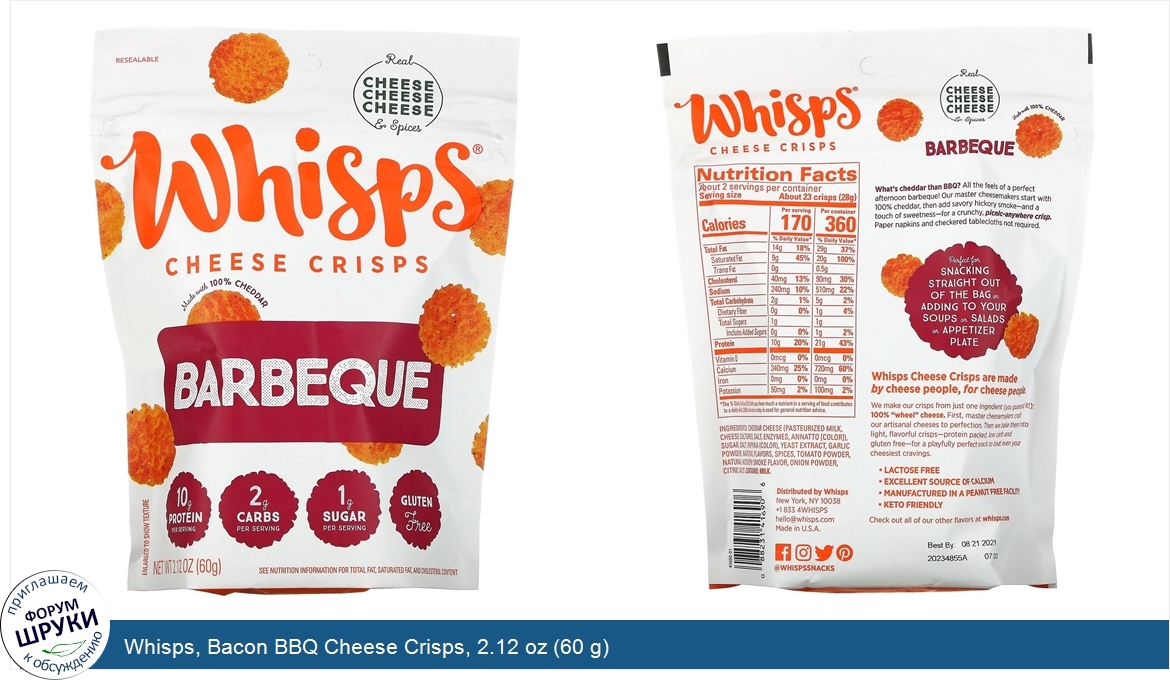 Друзья, если у вас есть отзыв/дополнение/комментарий/вопрос относительно Whisps, Bacon BBQ Cheese Crisps, 2.12 oz (60 g) - напишите его ответом в эту тему (это будет полезно всему сообществу в целом и вам в отдельности).