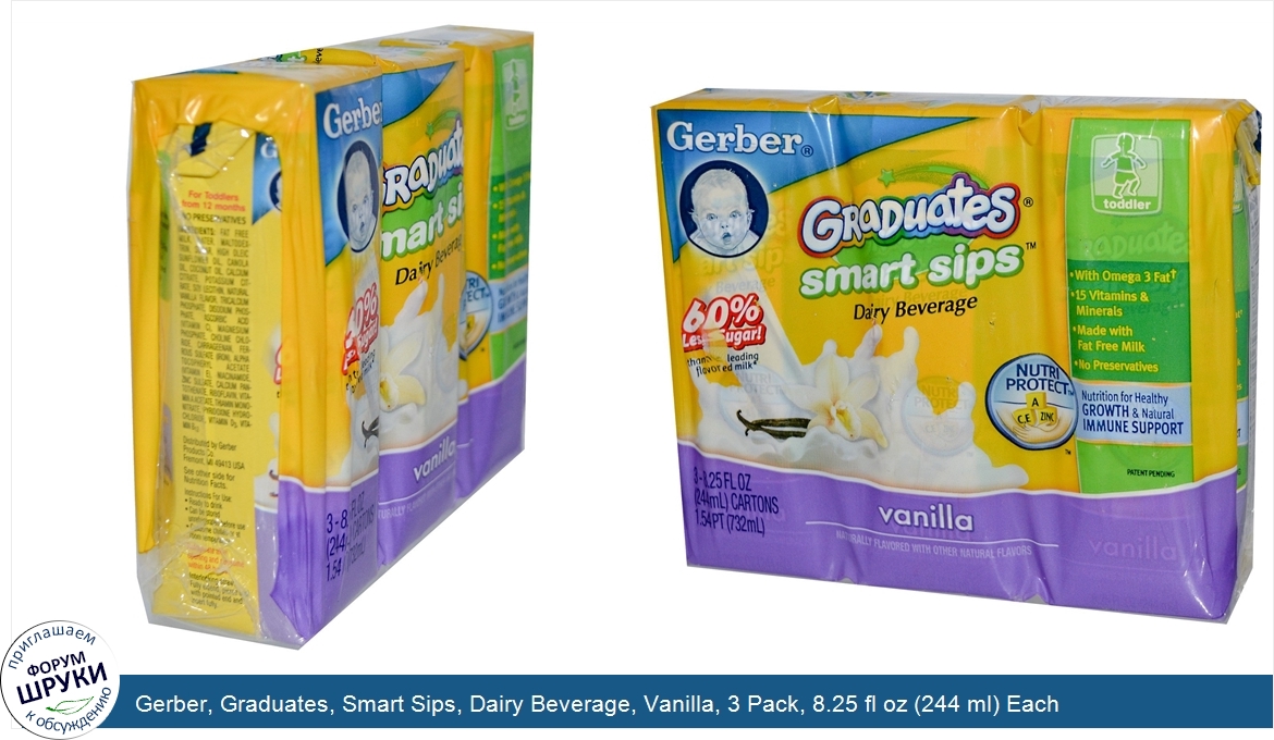 Друзья, если у вас есть отзыв/дополнение/комментарий/вопрос относительно Gerber, Graduates, Smart Sips, Dairy Beverage, Vanilla, 3 Pack, 8.25 fl oz (244 ml) Each - напишите его ответом в эту тему (это будет полезно всему сообществу в целом и вам в отдельности).