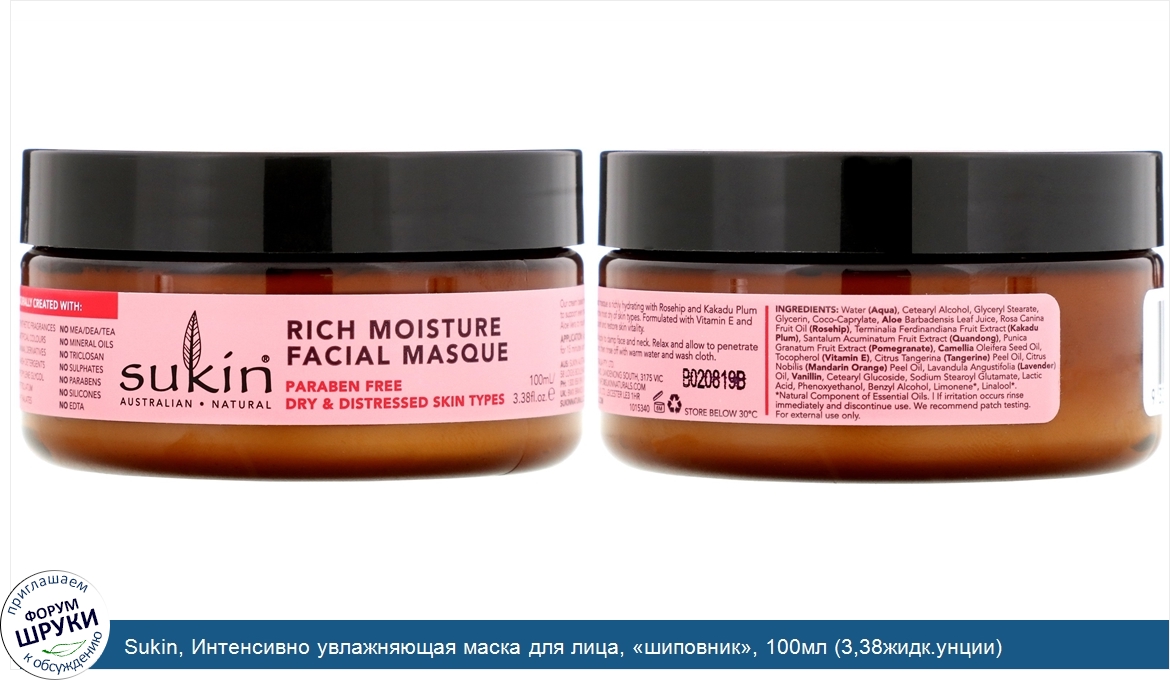 Sukin, Интенсивно увлажняющая маска для лица, «шиповник», 100мл (3,38жидк.унции)
