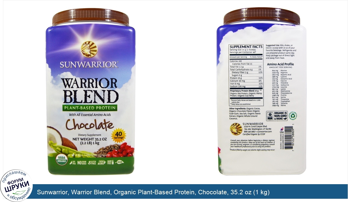 Друзья, если у вас есть отзыв/дополнение/комментарий/вопрос относительно Sunwarrior, Warrior Blend, Organic Plant-Based Protein, Chocolate, 35.2 oz (1 kg) - напишите его ответом в эту тему (это будет полезно всему сообществу в целом и вам в отдельности).