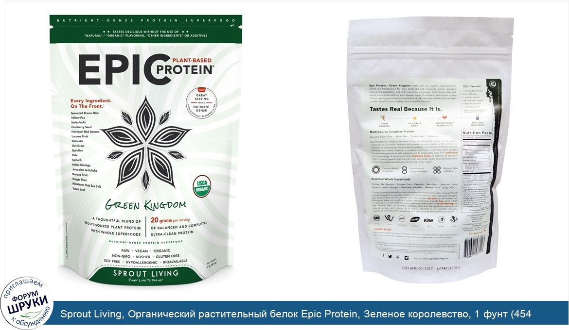 Друзья, если у вас есть отзыв/дополнение/комментарий/вопрос относительно Sprout Living, Органический растительный белок Epic Protein, Зеленое королевство, 1 фунт (454 г) - напишите его ответом в эту тему (это будет полезно всему сообществу в целом и вам в отдельности).