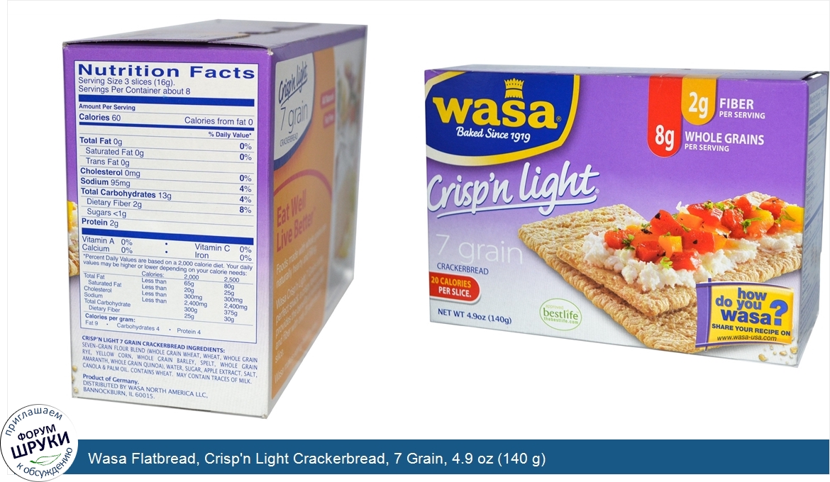 Друзья, если у вас есть отзыв/дополнение/комментарий/вопрос относительно Wasa Flatbread, Crisp'n Light Crackerbread, 7 Grain, 4.9 oz (140 g) - напишите его ответом в эту тему (это будет полезно всему сообществу в целом и вам в отдельности).