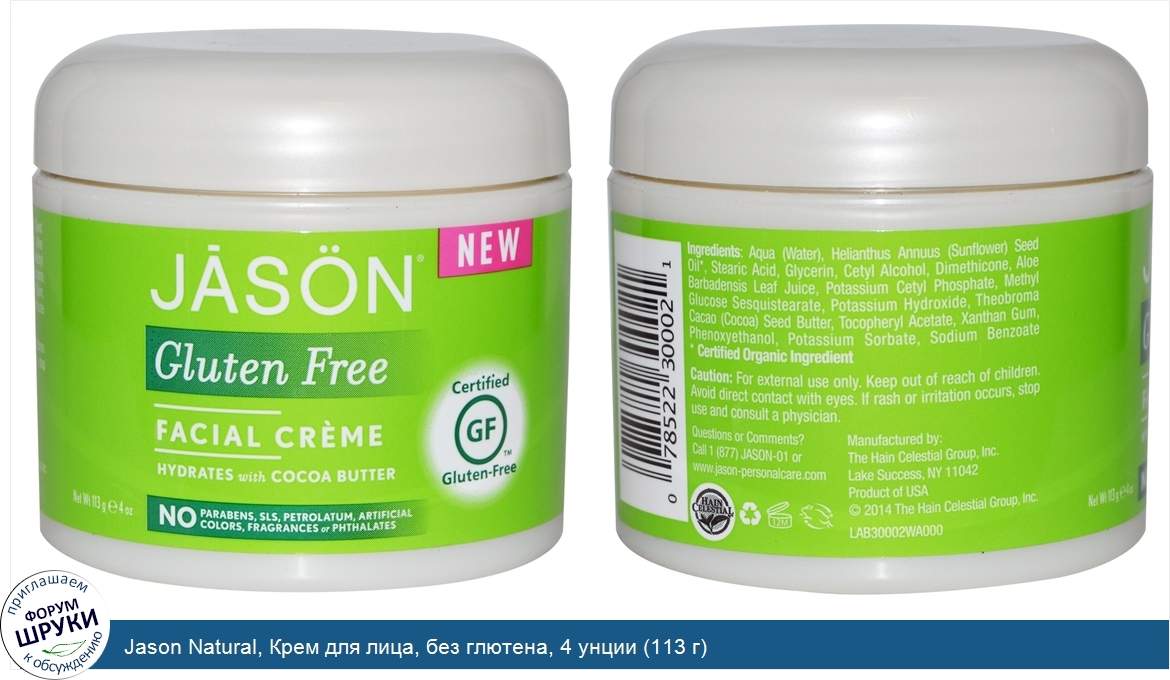 Друзья, если у вас есть отзыв/дополнение/комментарий/вопрос относительно Jason Natural, Крем для лица, без глютена, 4 унции (113 г) - напишите его ответом в эту тему (это будет полезно всему сообществу в целом и вам в отдельности).