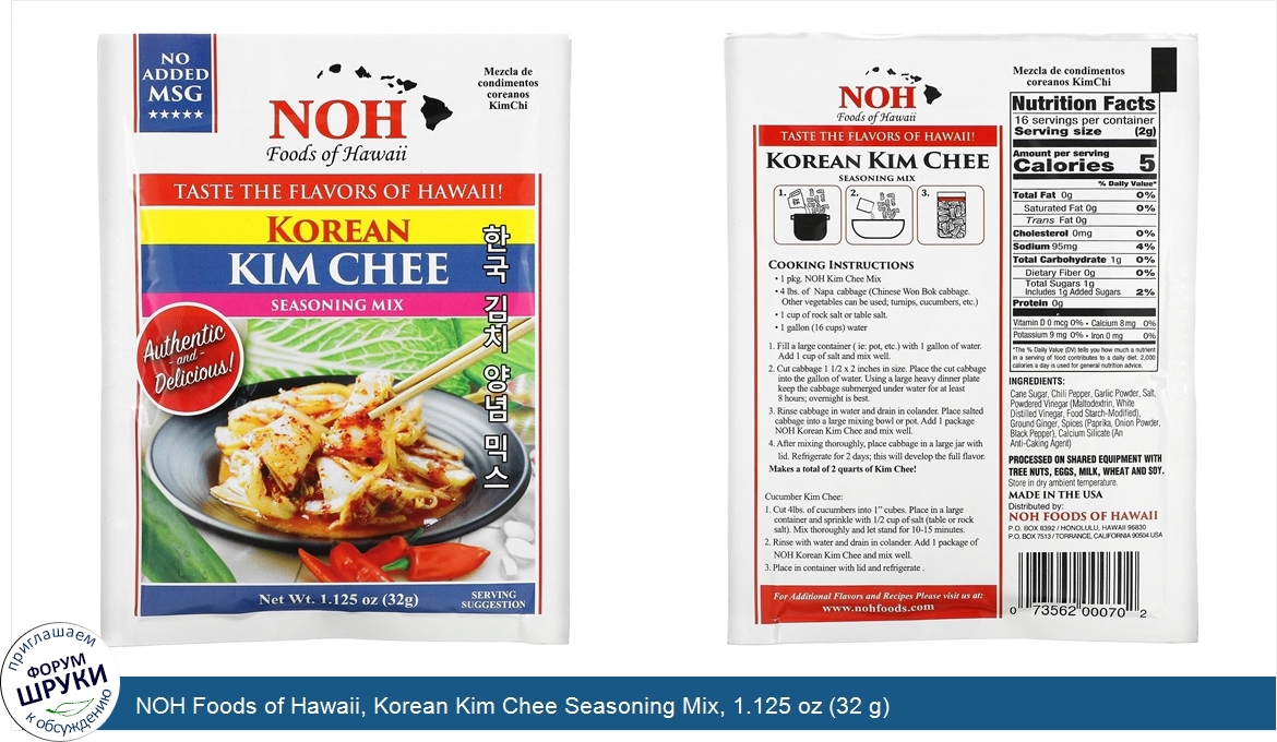 Друзья, если у вас есть отзыв/дополнение/комментарий/вопрос относительно NOH Foods of Hawaii, Korean Kim Chee Seasoning Mix, 1.125 oz (32 g) - напишите его ответом в эту тему (это будет полезно всему сообществу в целом и вам в отдельности).