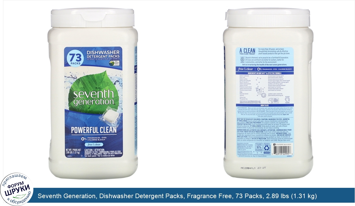 Друзья, если у вас есть отзыв/дополнение/комментарий/вопрос относительно Seventh Generation, Dishwasher Detergent Packs, Fragrance Free, 73 Packs, 2.89 lbs (1.31 kg) - напишите его ответом в эту тему (это будет полезно всему сообществу в целом и вам в отдельности).