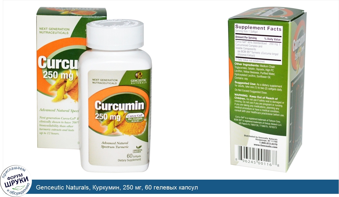 Друзья, если у вас есть отзыв/дополнение/комментарий/вопрос относительно Genceutic Naturals, Куркумин, 250 мг, 60 гелевых капсул - напишите его ответом в эту тему (это будет полезно всему сообществу в целом и вам в отдельности).