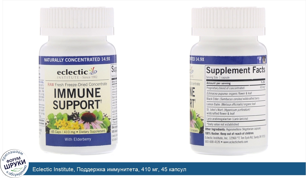 Eclectic Institute, Поддержка иммунитета, 410 мг, 45 капсул