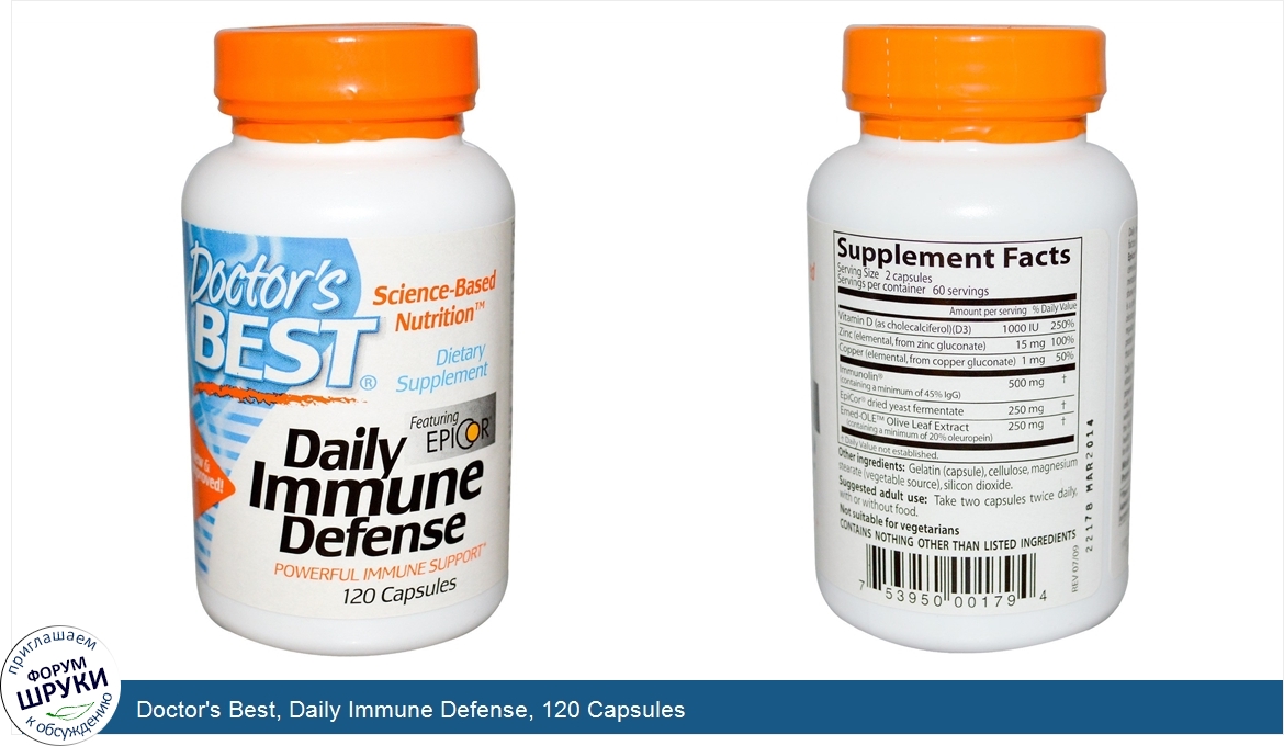 Друзья, если у вас есть отзыв/дополнение/комментарий/вопрос относительно Doctor's Best, Daily Immune Defense, 120 Capsules - напишите его ответом в эту тему (это будет полезно всему сообществу в целом и вам в отдельности).