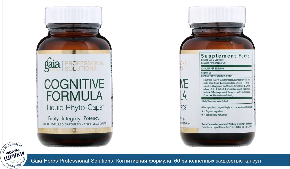 Gaia Herbs Professional Solutions, Когнитивная формула, 60 заполненных жидкостью капсул