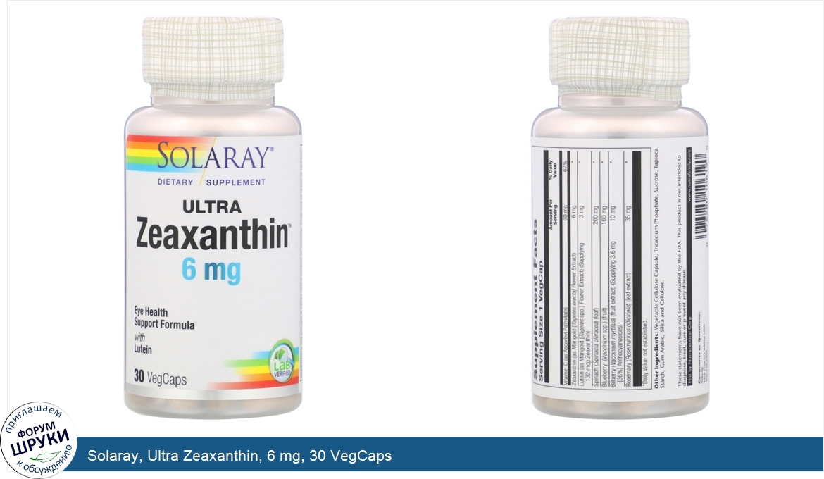 Друзья, если у вас есть отзыв/дополнение/комментарий/вопрос относительно Solaray, Ultra Zeaxanthin, 6 mg, 30 VegCaps - напишите его ответом в эту тему (это будет полезно всему сообществу в целом и вам в отдельности).