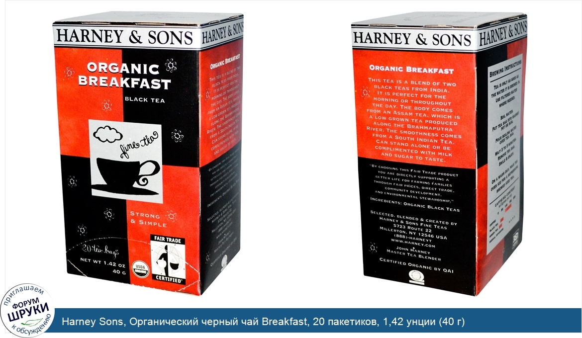 Harney Sons, Органический черный чай Breakfast, 20 пакетиков, 1,42 унции (40 г)