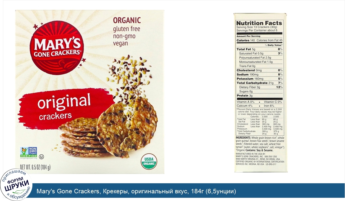 Друзья, если у вас есть отзыв/дополнение/комментарий/вопрос относительно Mary's Gone Crackers, Крекеры, оригинальный вкус, 184г (6,5унции) - напишите его ответом в эту тему (это будет полезно всему сообществу в целом и вам в отдельности).