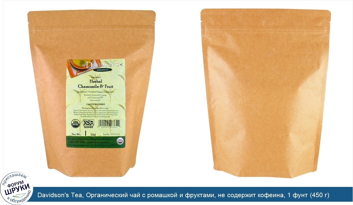 Davidson's Tea, Органический чай с ромашкой и фруктами, не содержит кофеина, 1 фунт (450 г)