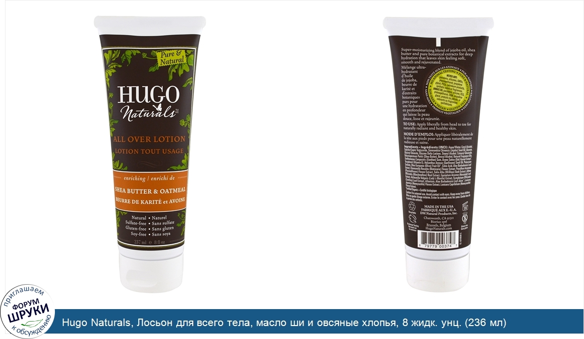 Hugo Naturals, Лосьон для всего тела, масло ши и овсяные хлопья, 8 жидк. унц. (236 мл)