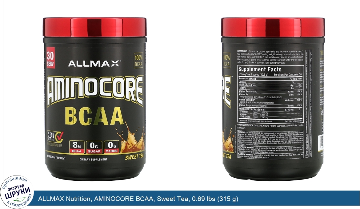Друзья, если у вас есть отзыв/дополнение/комментарий/вопрос относительно ALLMAX Nutrition, AMINOCORE BCAA, Sweet Tea, 0.69 lbs (315 g) - напишите его ответом в эту тему (это будет полезно всему сообществу в целом и вам в отдельности).
