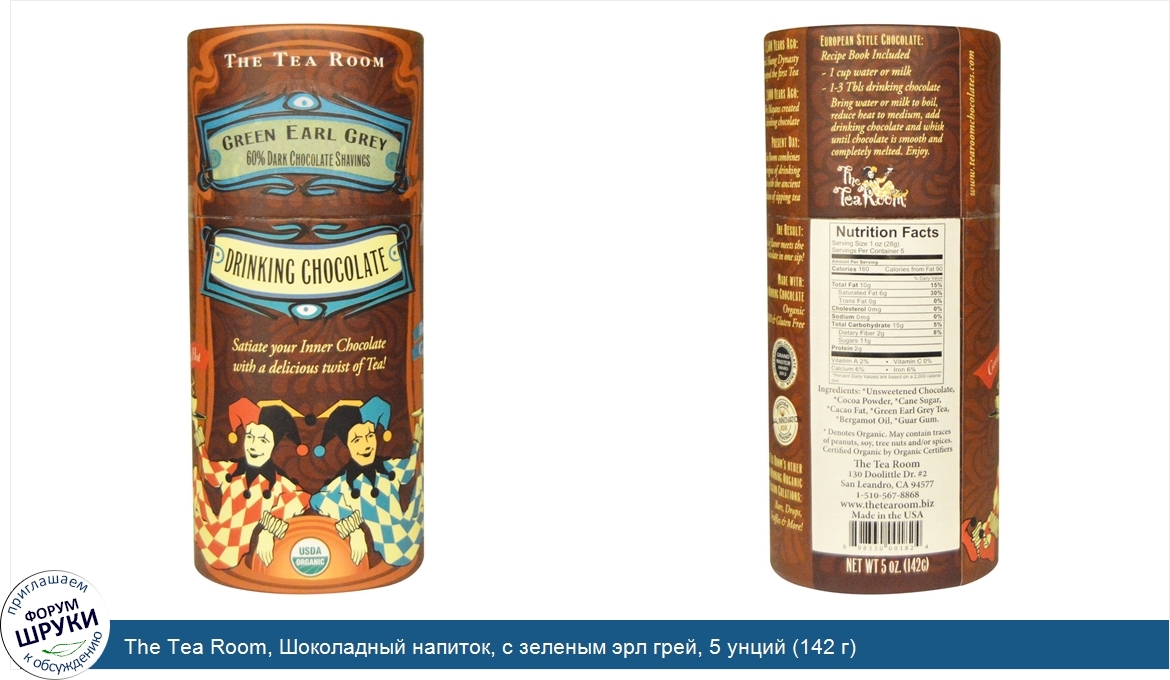Друзья, если у вас есть отзыв/дополнение/комментарий/вопрос относительно The Tea Room, Шоколадный напиток, с зеленым эрл грей, 5 унций (142 г) - напишите его ответом в эту тему (это будет полезно всему сообществу в целом и вам в отдельности).