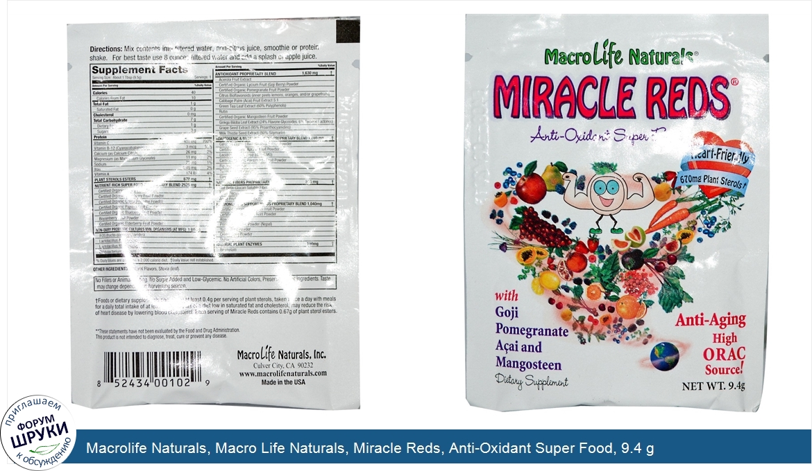 Macrolife Naturals, Macro Life Naturals, Miracle Reds, Anti-Oxidant Super Food, 9.4 g