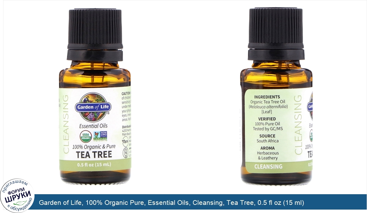 Garden of Life, 100% Organic Pure, Essential Oils, Cleansing, Tea Tree, 0.5 fl oz (15 ml)