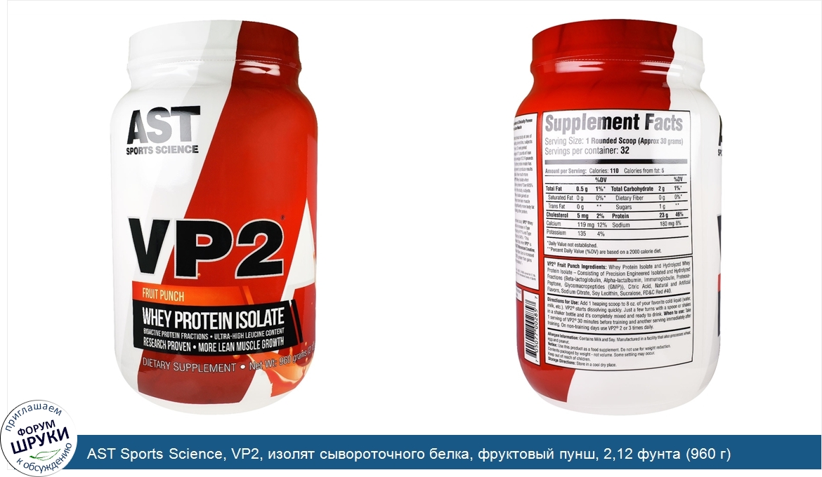 Друзья, если у вас есть отзыв/дополнение/комментарий/вопрос относительно AST Sports Science, VP2, изолят сывороточного белка, фруктовый пунш, 2,12 фунта (960 г) - напишите его ответом в эту тему (это будет полезно всему сообществу в целом и вам в отдельности).