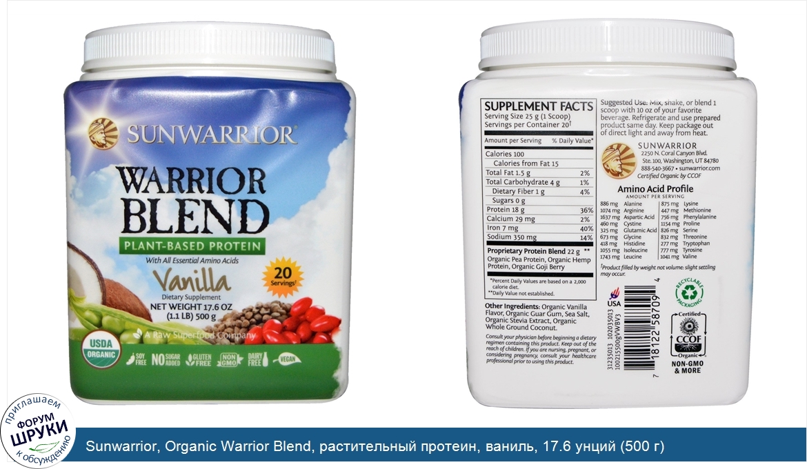 Друзья, если у вас есть отзыв/дополнение/комментарий/вопрос относительно Sunwarrior, Organic Warrior Blend, растительный протеин, ваниль, 17.6 унций (500 г) - напишите его ответом в эту тему (это будет полезно всему сообществу в целом и вам в отдельности).