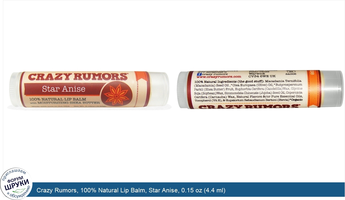 Crazy Rumors, 100% Natural Lip Balm, Star Anise, 0.15 oz (4.4 ml)