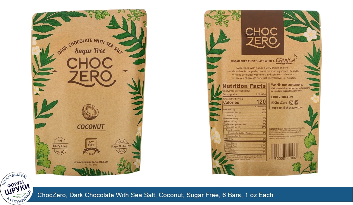 Друзья, если у вас есть отзыв/дополнение/комментарий/вопрос относительно ChocZero, Dark Chocolate With Sea Salt, Coconut, Sugar Free, 6 Bars, 1 oz Each - напишите его ответом в эту тему (это будет полезно всему сообществу в целом и вам в отдельности).