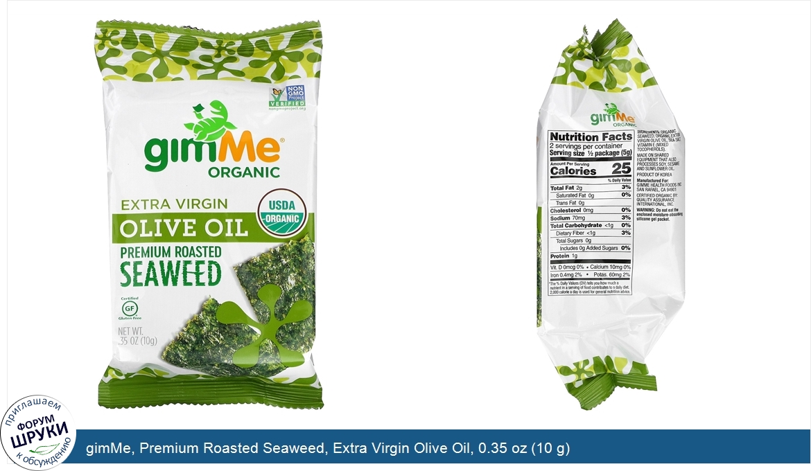 [DESCRIPT]NON GMO Project Verified. USDA Organic. Certified Gluten-Free. Sea Turtle Conservancy - We Support Sea Turtles. Quality Assurance International - Certified Organic. Vegan. #1 Organic Seaweed Brand. gimMe was the first to bring the world Organic, non-GMO branded seaweed. Ready for something new? gimMe harvests and curates the highest quality, best tasting seaweed on this precious planet. Enjoy gimMe's Roasted Seaweed Snacks and prepare for an umami adventure.[/DESCRIPT]... (описание дополняется)