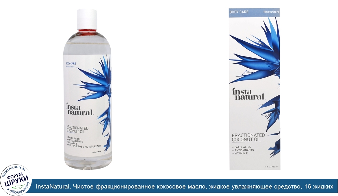 Друзья, если у вас есть отзыв/дополнение/комментарий/вопрос относительно InstaNatural, Чистое фракционированное кокосовое масло, жидкое увлажняющее средство, 16 жидких унций (480 мл) - напишите его ответом в эту тему (это будет полезно всему сообществу в целом и вам в отдельности).